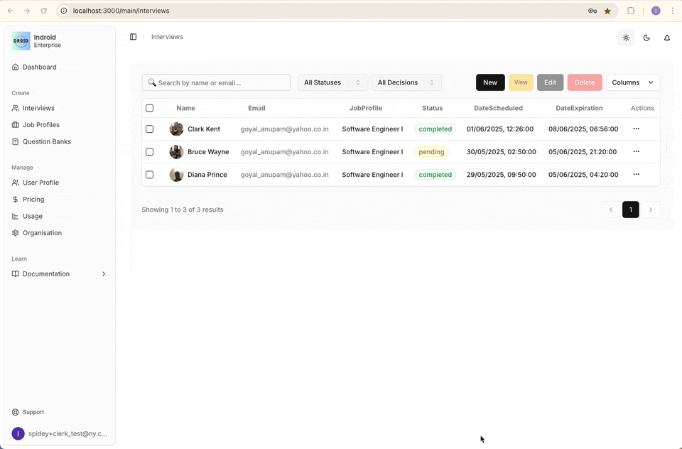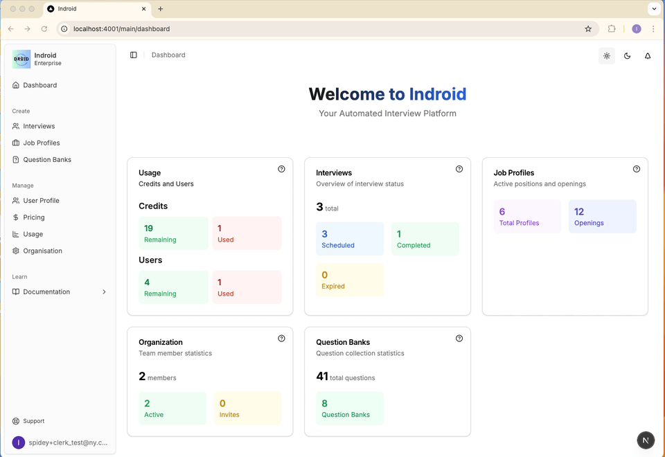 Indroid is an AI-powered platform designed to automate interviews, providing a consistent, unbiased, and efficient screening process.
